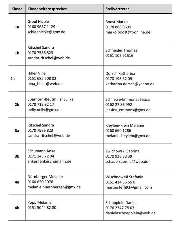 Klassenelternsprecher im Schuljahr 2025 / 2026